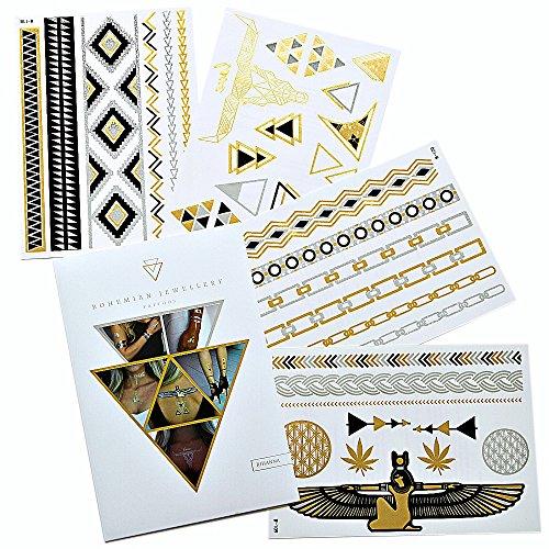 Goddess. Ancient. Wild The ancient Egyptians can be praised for inspiring many things we see today, and our Rihanna collection is no different. Taking design hints from Egypt, these geometric transfer tattoos are bound to release your inner Goddess. The 4 sheets of mixed metallic tones and black transfer tattoos are ideal for sharing with friends. Have Fun! Get Creative! Share With Friends!