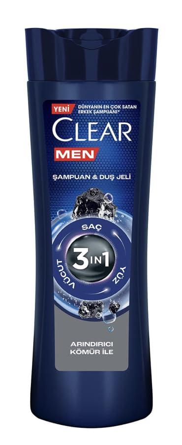 - It is now possible to have dandruff-free hair, clean skin and a fresh body in a single product with Clear Men 3 in 1 Shampoo & Shower Gel Purifying Charcoal against dandruff specially developed for men's scalp, face and body. It deeply cleanses the hair and body to purify from dirt and oil from head to toe with the charcoal it contains.