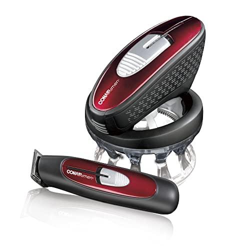 - Bonus Trimmer Included: The ConairMAN Even Cut includes a trimmer for neckline and sideburns with a 5-position guide comb; Requires 2 AA batteries (not included). Also included barber comb, cleaning brush, oil, and storage pouch.