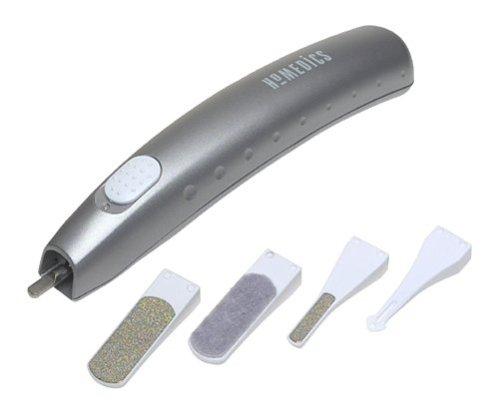 Amazon.com\n\nIf you\'re looking for a convenient, travel-friendly way to keep those nails and cuticles in shape, take a look at this complete manicure kit from HoMedics. It includes four attachments: a cuticle lifter, a large shaping file, a small shaping file, and a polishing tool. Each of the attachments connects easily to the base, making it convenient to switch from shaping to polishing and vice versa. The handle is comfortable to hold, and the on/off switch is well placed for easy access. It requires only a single AA battery, and comes with its own carrying case designed to hold the base and all four attachments. --Jonathon Tudor