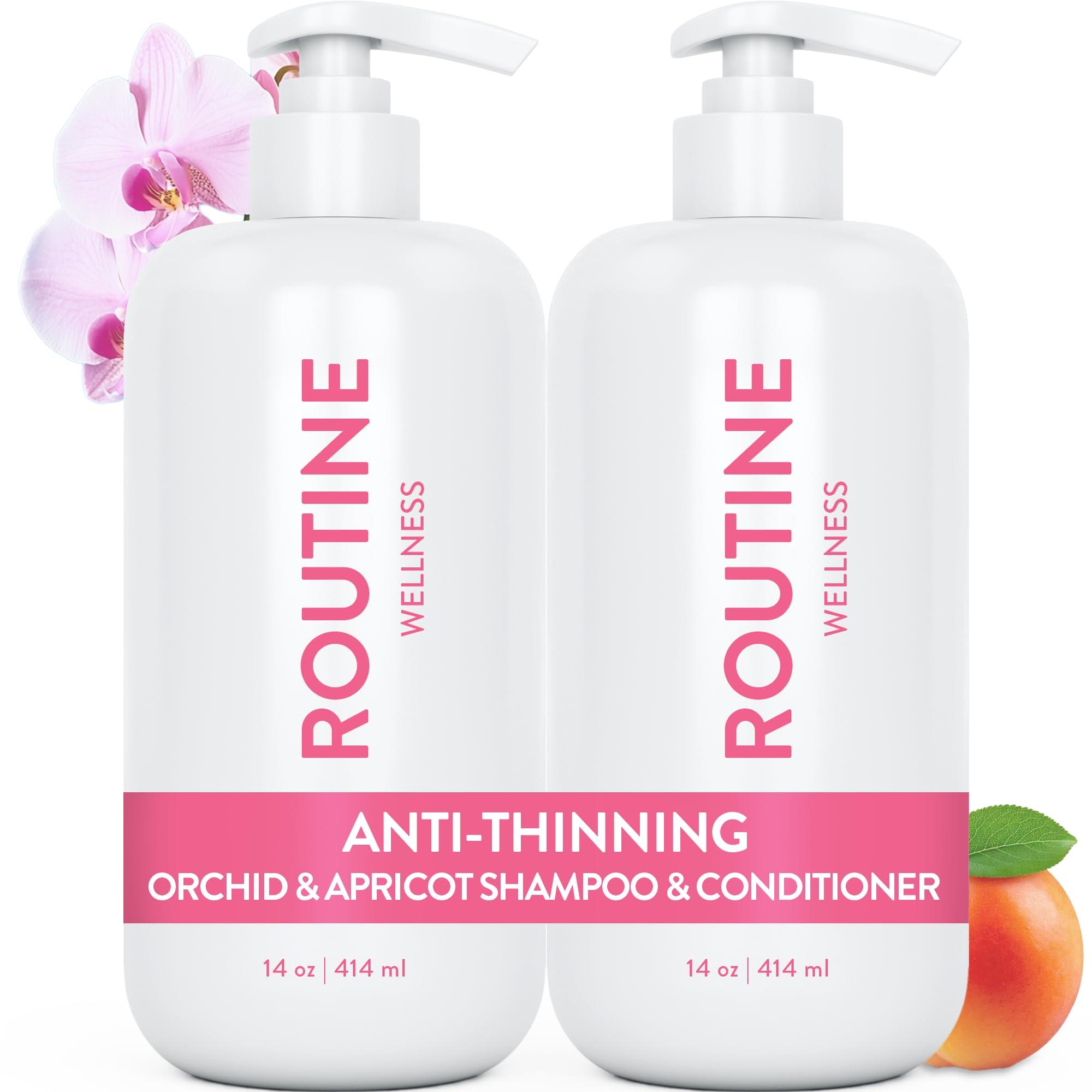 Routine Wellness Routine Wellness Anti-Thinning Shampoo and Conditioner Set for Thinning Hair - Biotin DHT Blocker Women & Men - Color Safe Shampoo for Hair Loss & Healthier Growth - Orchid & Apricot 14oz (Pack of 2)