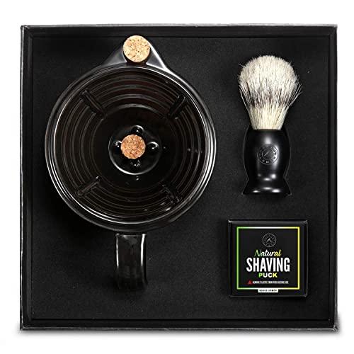 - HOT SHAVE WITH A TOASTY LATHER EVERY DAY - This heavy-duty porcelain shaving scuttle retains temperature longer than your ordinary shave mug. Lather your favorite soaps and creams directly in your new shaving mug, and enjoy a hot shave, just like at the barbershop. This shaving mug set comes with everything you need to wet shaveNaked Amor shave brush and our organic shaving soap for an excellent experience. "Best hot shave ever. Tons of warm, frothy lather. What an amazing shave!" ~ Tom, TX