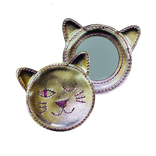 Kitties, this is a stylish make-up bag essential you won't be able to live without. Genuine leather embroidered with a whimsical winking cat. 2" diameter (not including ears).