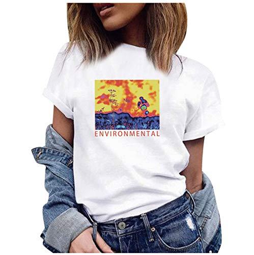 niaanieaie Womens Short Sleeve Tops T-Shirt Cute O-Neck Printed Fitting Blouse Shirt Tunic Top Stretch(White,L)