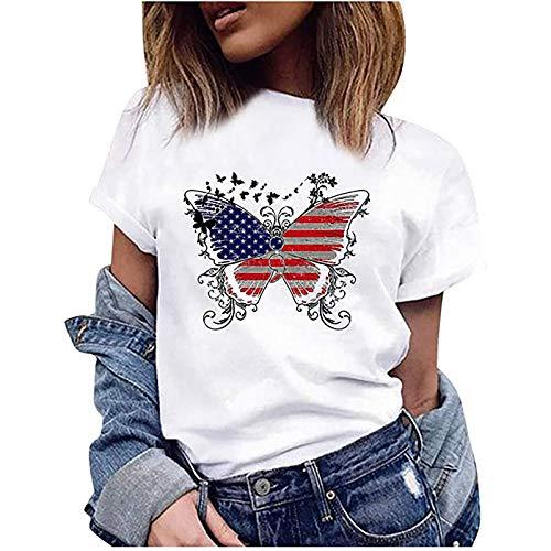 Women's Tops for Independence Day Floral Tops V/O Neck Printed Basic Loose Casual(White,XL)