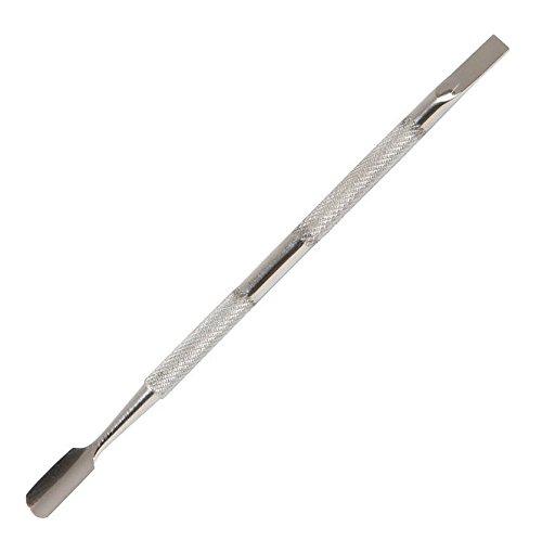 This stainless steel manicure and pedicure tool combines a pushy cuticle pusher at one end with a convenient nail cleaner at the other end. Edges are buffed smooth to prevent scratching the nail. Its textured body provides a secure grip.